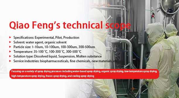 Shanghai Qiaofeng Industrial Co., Ltd. is a comprehensive company specializing in R&D, production, sales and after-sale of powder drying equipment. The company is now an entire turnkey project company that is committed to providing complete solutions for new energy materials, fine chemicals, biopharmaceuticals and food engineering.